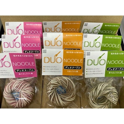■内容量/製造地 DUOヌードル(プレーン) 50g×3個 DUOヌードル(うめ) 50g×3個 DUOヌードル(お茶) 50g×3個 製造地:すべて福井県美浜町 ■賞味期限 すべて製造日より12ヶ月 ■注意事項/その他 ・小麦、そばアレルギーの方はお召し上がらないでください。