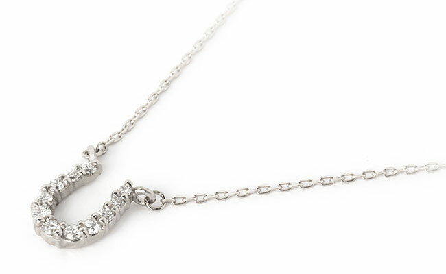 ダイヤモンド ネックレス 馬蹄 ホースシュー K18ホワイトゴールド カットアズキチェーン K18WG 18KWG 18金 日本製 [kh]