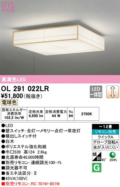 OL291022LR オーデリック の返品・交換について OL291022LR 商品の仕様 メーカー / 型番: OL291022LR オーデリック 和風シーリングライト商品カテゴリ: 照明器具 和風シーリングライト 10〜12畳 通販注意事項: ※リモコン別売です。