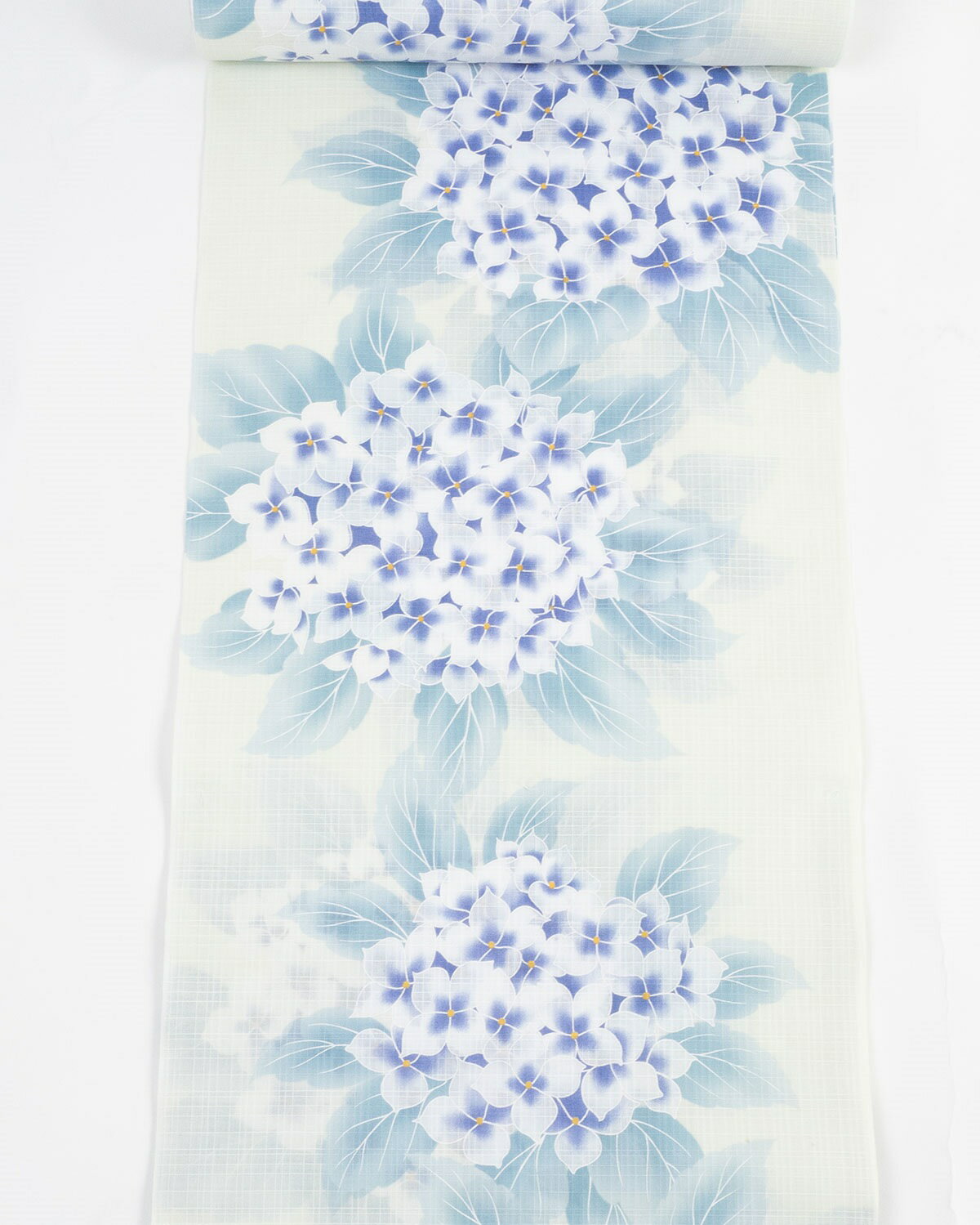 |送料無料|【生地代+お仕立て代込み価格】浴衣反物|IKS COLLECTION|イクスコレクション|浴衣|生地|反物|お仕立て|花柄|クリーム色|紫陽花|紫|