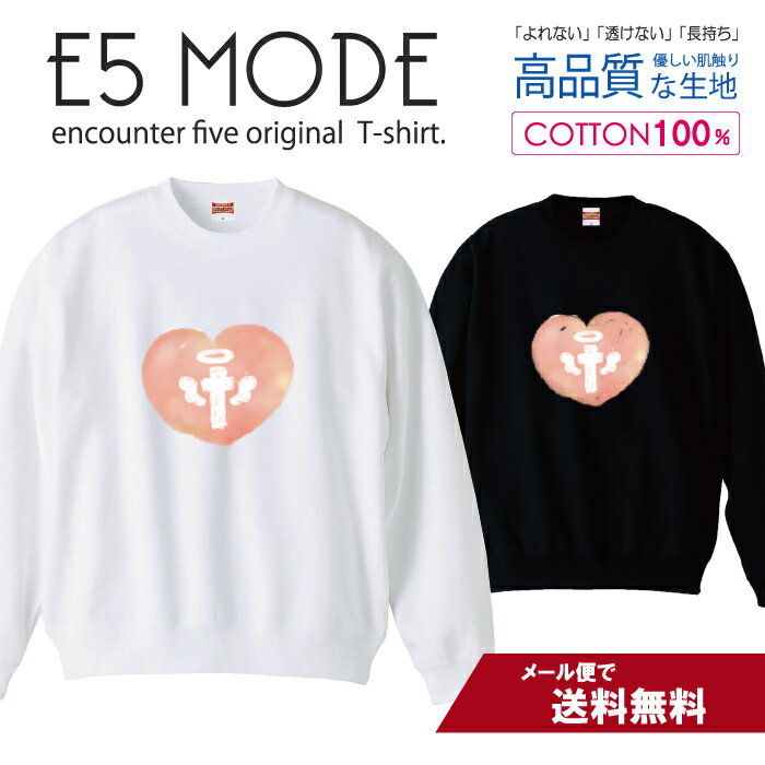 ハート 十字架 クロス 天使 エンジェル オレンジ かわいい ビッグシルエット スウェット トレーナー ユニセックス メンズ レディース 長袖 綿100% コットン ゆったり 大きめ リブ付き 黒 白 ブラック ホワイト