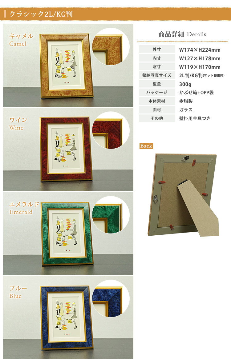 品番 キャメル(105-466)JAN:4950486454049 ワイン(105-467)JAN:4950486454056 エメラルド(105-468)JAN:4950486454063 ブルー(105-469)JAN:4950486454070 おすすめ関連商品 ⇒ クラシックフレーム2L・KG 木目調