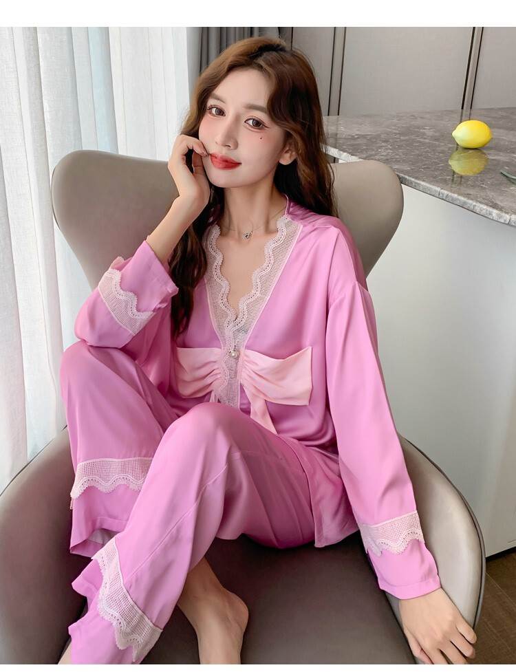 パジャマ ルームウェア レディース 春夏秋 長袖パジャマ 前開き 風ルームウェア 可愛いレース無地上下セット 大きいサイズ部屋着 寝巻き ギフト 薄手