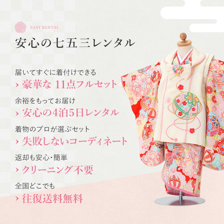 【レンタル】 七五三 3歳着物レンタル 七五三 被布 貸衣装 往復送料無料 七五三フルセット付 髪飾り付 簡単な着せ方マニュアル付 HAPH545000