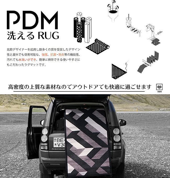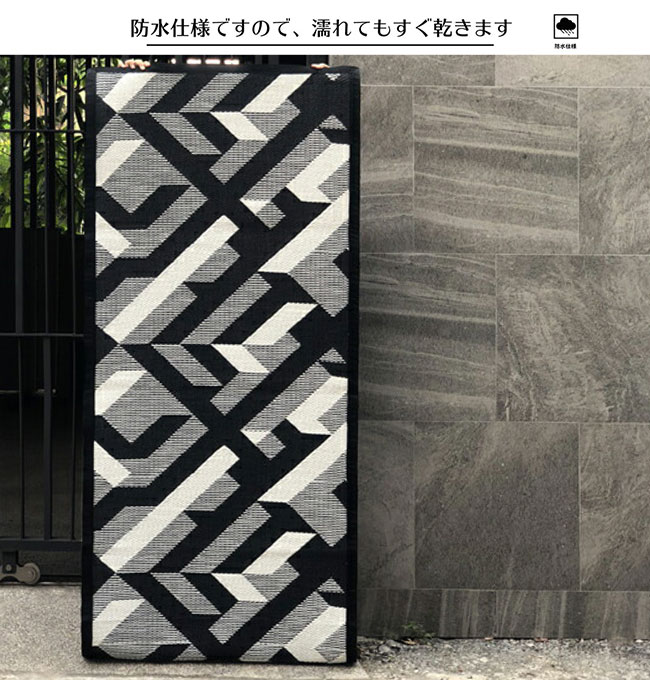 防水・抗菌・UVカット加工などの高い機能性とデザイン性を兼ね備え、 屋内外を問わず活躍するオールマイティなラグマットです。