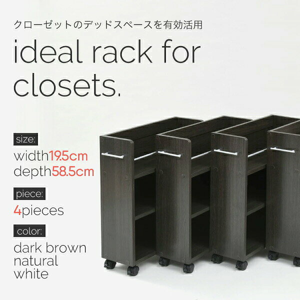 ■商品説明 キャスター付きの便利なクローゼットラック4個組。