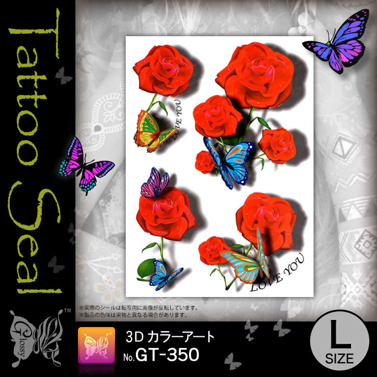 タトゥーシール バラ 薔薇 立体 3Dカラーアート (GT-350) Tattoo フェイクタトゥーシール トライバル (ゆうパケット対応)