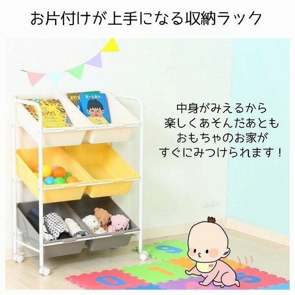 [ 送料無料 ] ペールカラーがおしゃれ オープンラック おもちゃ収納 キッズトイハウスラック キッズラック ラック 子供部屋収納 収納 おもちゃ オモチャ 整理 お片付け キャスター付き ベビー ■ かわいく収納 キッズラック [ 6マス ]【後払い決済不可】