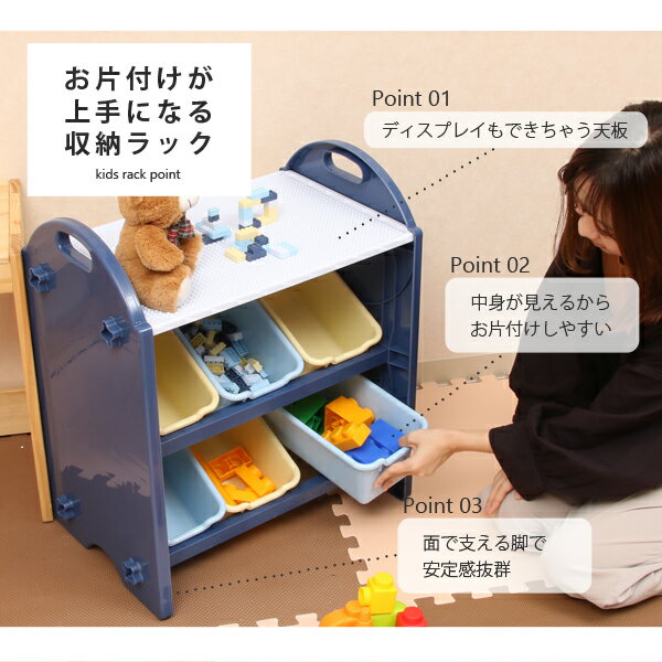 [ 送料無料 ] 天板付き オープンラック おもちゃ収納 キッズトイハウスラック キッズラック ラック 子供部屋収納 収納 おもちゃ オモチャ 整理 お片付け ベビー キッズ収納 ■ 賢くおしゃれに収納 キッズラック パステル [ブロック200ピース付]【後払い決済不可】