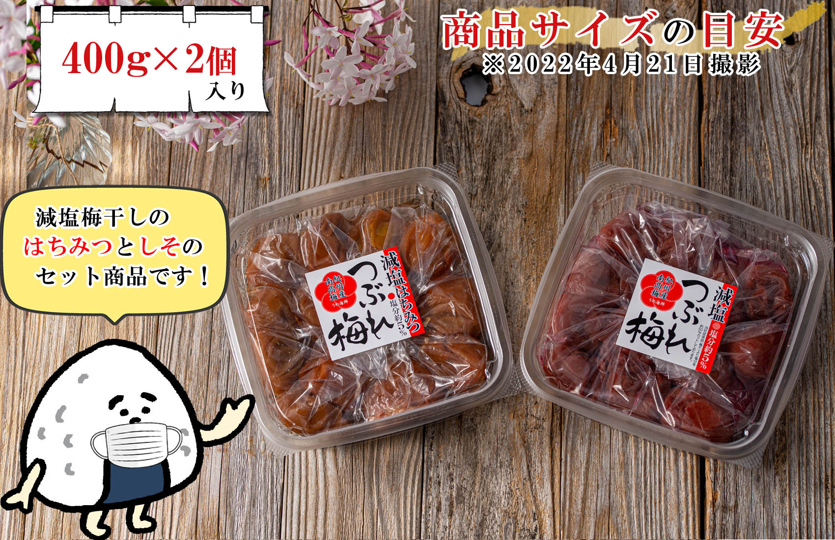 【送料無料】 梅干し はちみつ しそセット ( 減塩 塩分5% 大粒 完熟 つぶれ梅 ) 800g(400g×2個) 国産 訳あり 紀州南高梅 はちみつ味 しそ梅干し はちみつ梅干し はちみつ漬け しそ漬け ハチミツ しそ梅干し つぶれ梅しそ うめぼし しそ しそ梅 しそ漬 南高梅 蜂蜜 梅 漬物 ほんのり甘いはちみつ漬け&しそ梅干し(どちらも減塩5%)のセット商品です。