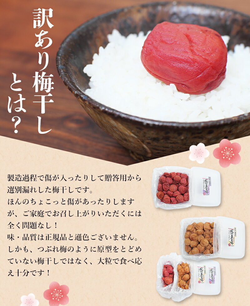 返礼品発送元 紀の誉食品 注意事項 選別・製造工程で出た規格外の梅干しを集めた商品となります。