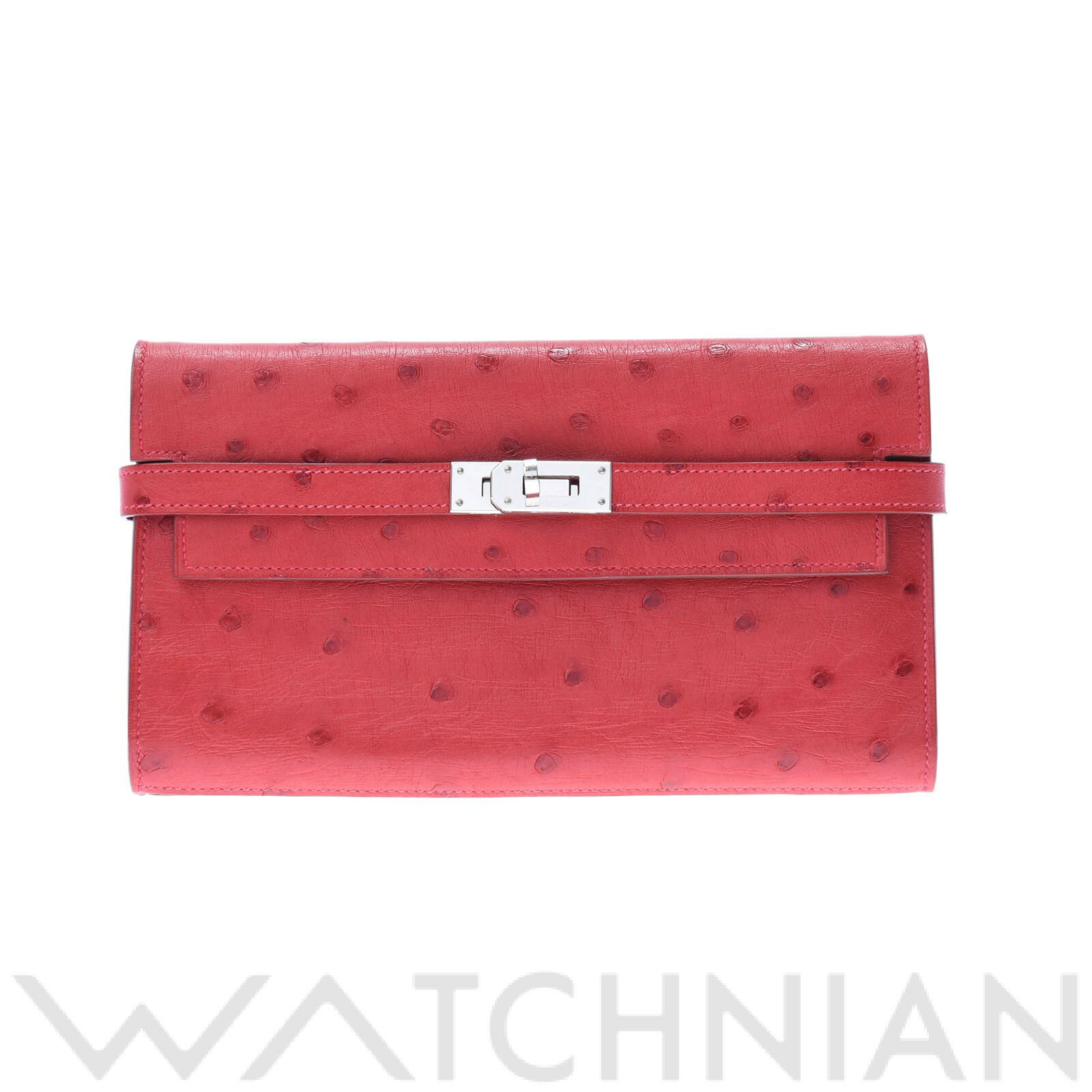 HERMES(エルメス) ケリーウォレット 長財布 ロングウォレット オーストリッチ パラジウム金具 フューシャピンク ピンク桃 パープル紫 シルバー金具 □N刻印 レディース 40802023754【中古】【アラモード】