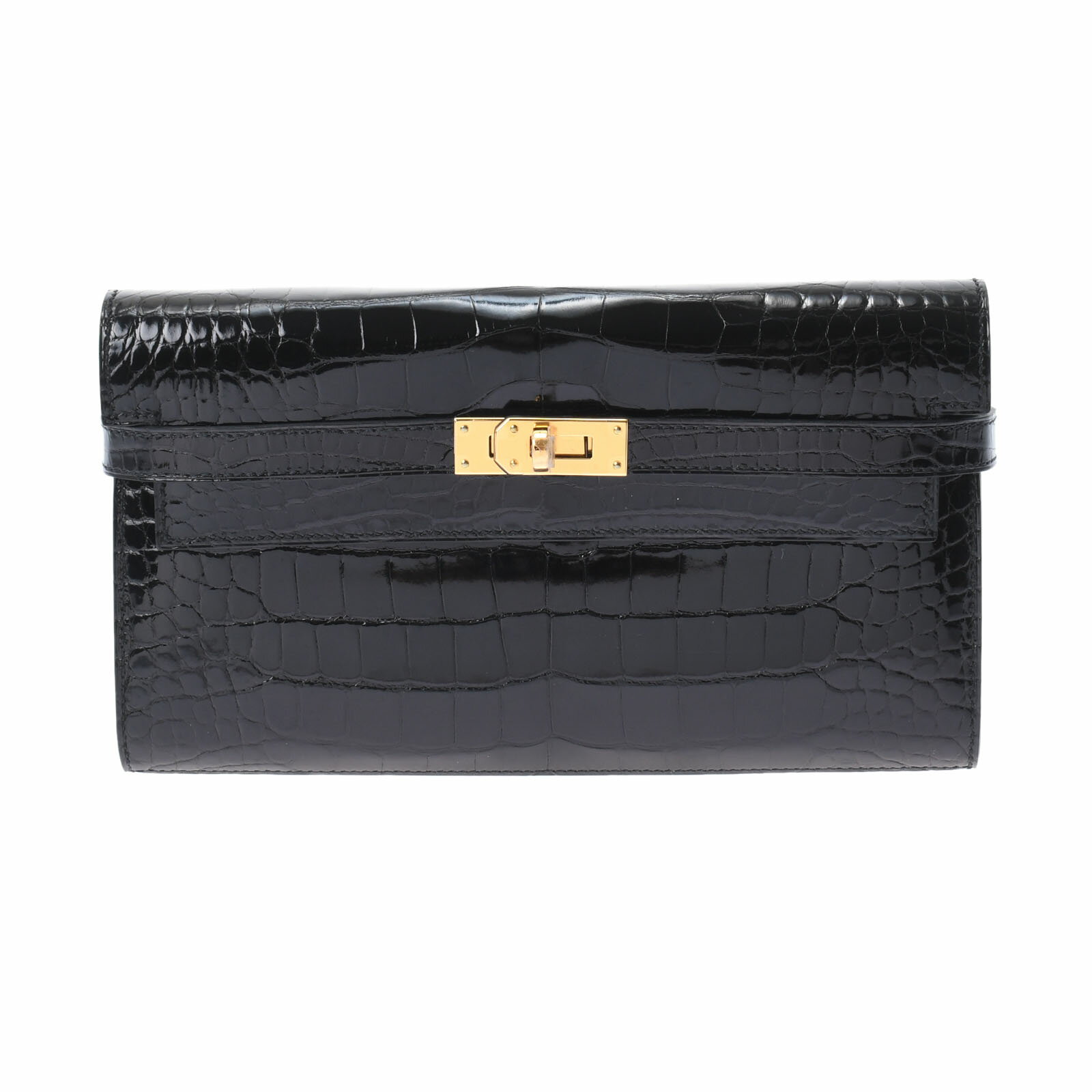 【WATCHNIAN誕生記念 全品P2倍 〜8/23】【未使用品】 エルメス HERMES ケリーウォレット ロング 黒/ゴールド金具 アリゲーター ユニセックス 長財布