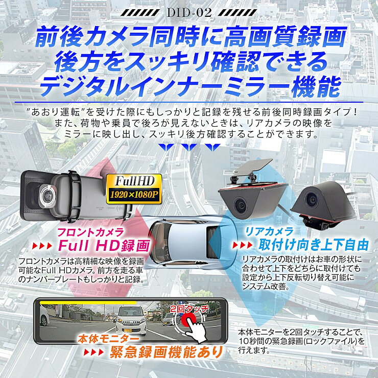 型番 DID-02 JANコード 4589899043542 検索用: ドライブレコーダー ミラー 車載 カメラ 車内撮影 後方 駐車監視 前後 ミラータイプ リア メーカー希望小売価格はメーカーサイトに基づいて掲載しています